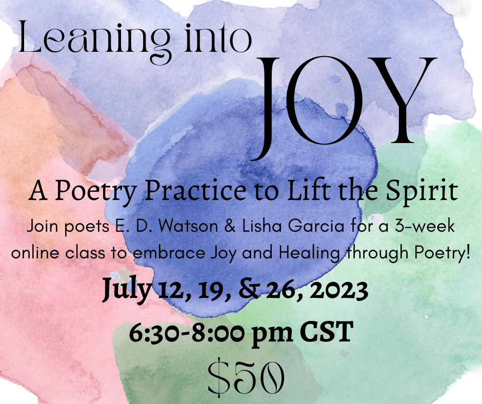 We live in troubling times, but Poetry can be a balm. Join poets E. D. Watson and Lisha Garcia for a 3-week online workshop to embrace hope and healing through the practice of writing and reading poetry.